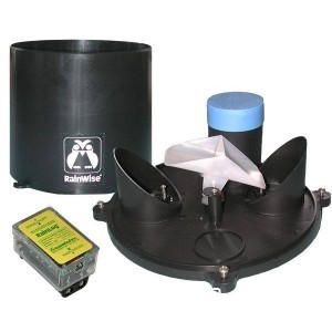 8 "diameter UV-menghambat kolektor polypropylene memenuhi spesifikasi NWS untuk akurasi statistik. Setiap kali ujung ember, hitungan ditransmisikan. Setiap ujung ember adalah setara dengan 1/100 th inci curah hujan.